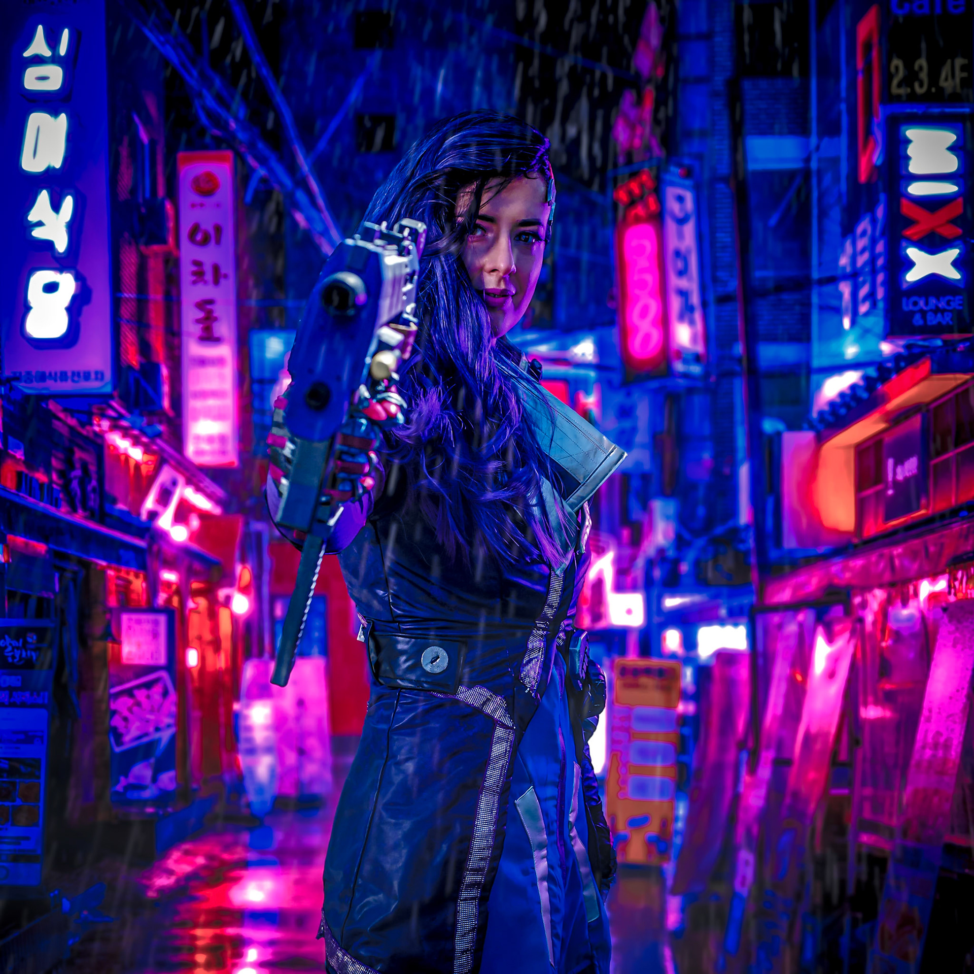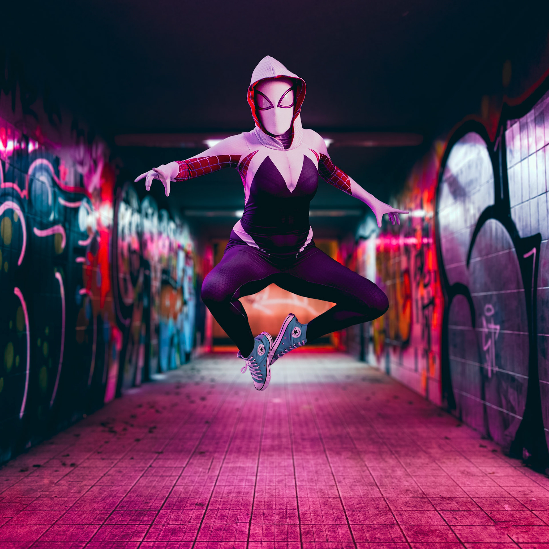 Photos are mostly taken at conventions, which I attend regularly, most with background replacement.